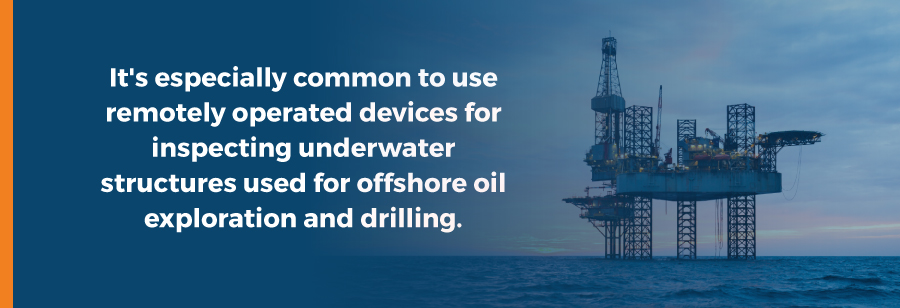 石油和天然气行业是自动化检测设备最主要的用户之一。机器人检查工具可以在从地下开采原油到向客户运送石油产品的各个方面发挥作用。石油钻井平台操作员使用机器人来检查钻井设备。使用远程操作设备尤其常见检查水下结构用于海上石油勘探和钻探。
