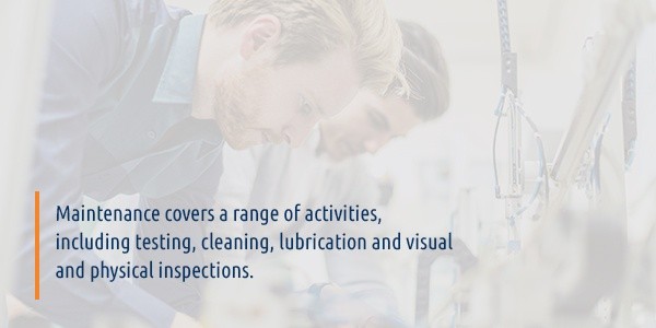 维护包括一系列活动,包括测试、清洁、润滑以及视觉和物理检查。