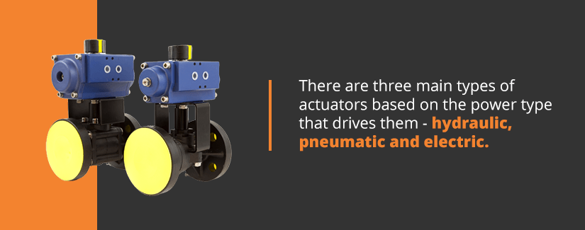 根据驱动它们的动力类型,执行器主要有三种类型——液压、气动和电动。所有形式的执行器都将能量转化为机械运动,无论是直线运动还是旋转运动。从本质上讲,执行器允许阀门的自动运动。每种类型的执行器都有特定的优点、缺点和用途: