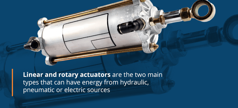 执行器可以产生两种主要的运动形式,这取决于它们的设计。线性和旋转执行器是两种主要类型,可以从液压,气动或电力来源获得能量: